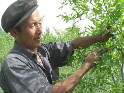 • 5月22日,新疆若羌县铁干里克乡农民库尔班·努尔正在红枣地里进行夏季管理。 近年来,新疆若羌县充分利用电视、电教网络,编制近1万册《若羌县红枣栽培技术规程》(维汉)等科技资料,先后举办红枣技术培训班100多期,培训农民19000多人次,传播科技实用技术,提高农民种植红枣科技含量。目前,全县上万名农民都熟练地掌握了红枣种植管理技术。 [详细]