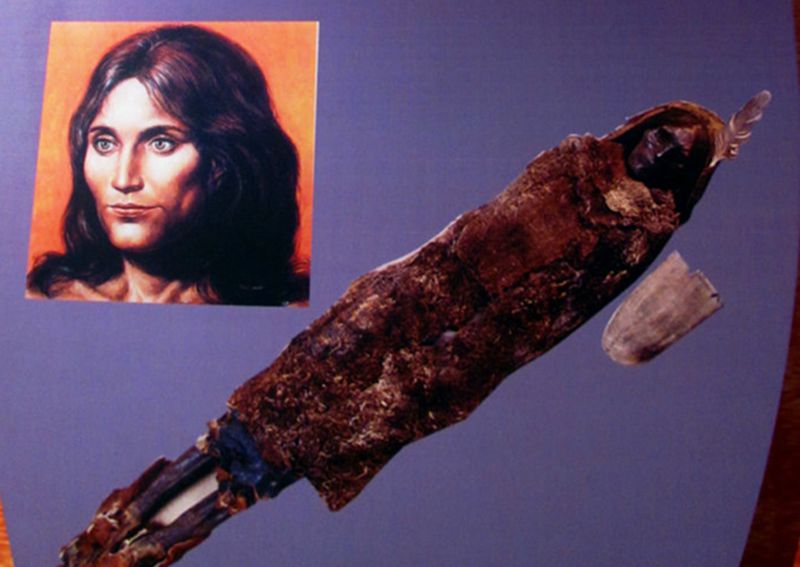 “楼兰美女”,1980年出土于新疆若羌县楼兰墓葬群。出土时身长152厘米(生前身高约155.8厘米),体重10.7公斤。生前年龄约40-45岁,是一壮年妇女。经中国社会科学院考古研究所C14测定,其年代距今3880±95年,是早期楼兰人遗体。比长沙马王堆女尸还要早1800多年。