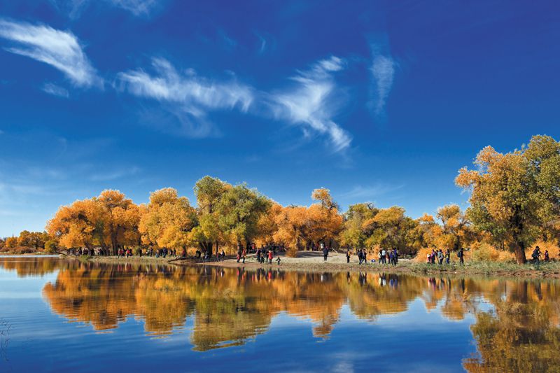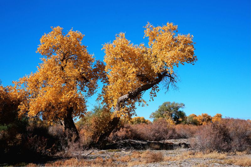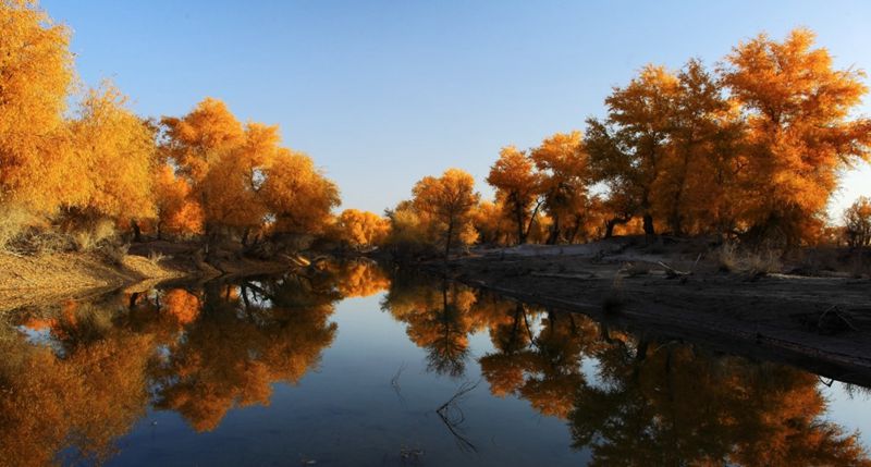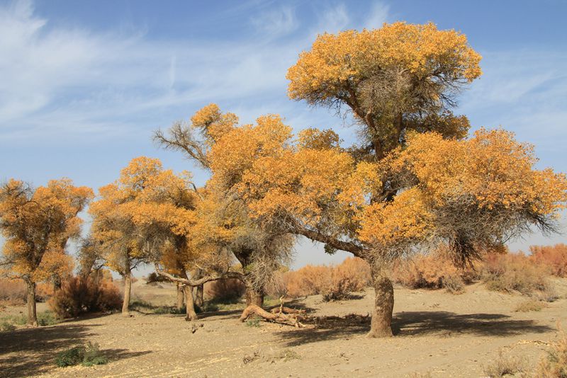 塔里木河流域生长着中国90%以上的胡杨林,这些胡杨林沿塔里木河流域呈走廊状分布在南疆3地州(包括新疆生产建设兵团辖区),塔里木河流域的胡杨林总面积已超过65万公顷,其中在若羌县面积为48.8万亩。