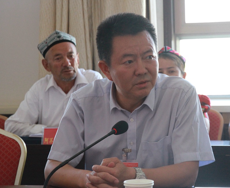 若羌县委书记宋学斌与政协委员亲切交谈。 王勇强 摄